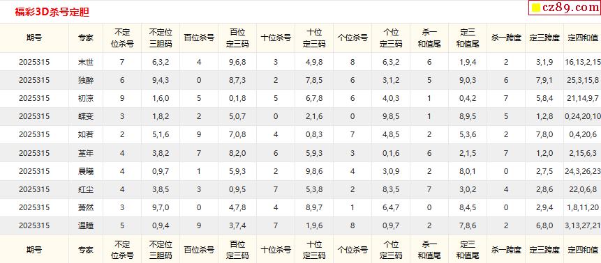25年315期彩宝贝专家福彩3D杀号定码图表