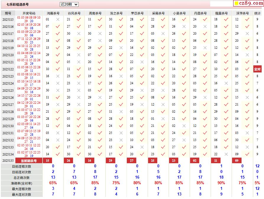 首页 > 七乐彩预测 > 25年135期彩票专家福彩七乐彩杀号图表